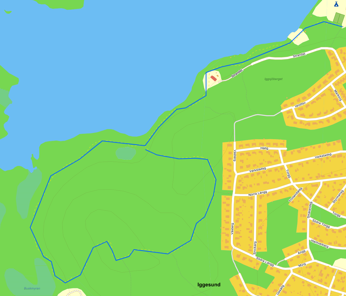Belysningen i södra motionsspåret i Iggesund är ej tänt under mörker och skymming. Förslaget är att Kommunen (som äger belysningen) tillser att belysningen tänds under skymning och mörker så motionsspåret kan nyttjas under året runt, se den blå linjen i bifogad bild. Om den befintliga belysningen inte uppfyller kraven så bör den bytas ut av kommunen. Ett avtal kan göras med Holmen som äger marken. Jag anser att detta främjar folkhälsan i Iggesund då detta motionsspår används flitigt av oss Iggesundare under de ljusa timmarna. Detta borde ligga högt upp på kommunens lista på åtgärder!